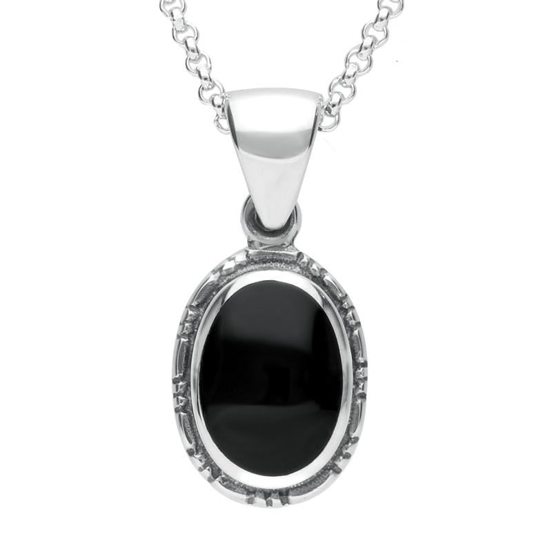 Sterling Silver Whitby Jet Oval Rope Edge Pendant. P164.