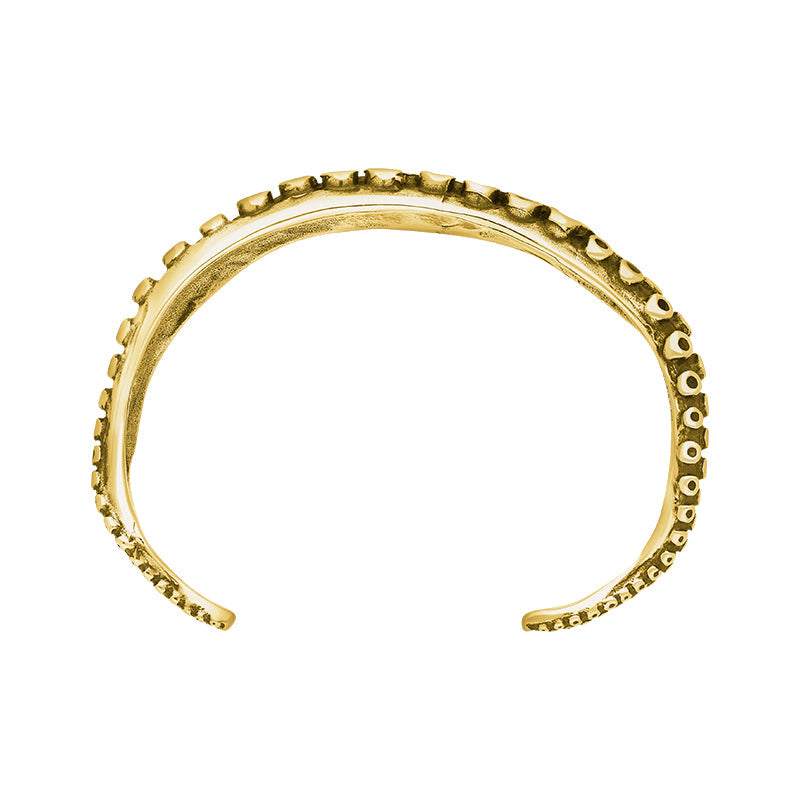 Discover our beautifully crafted Sea Life collection and add to it with this 18ct yellow gold and Whitby Jet tentacle bangle. Our items make the perfect gift and become treasured memories for years to come. This tentacle bangle contains eight pieces of Whitby Jet, set within the 18ct yellow gold sucker detail of the piece.