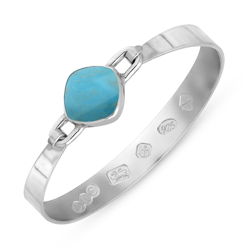 Dimensions: Width of bangle; 10mm. Turquoise; 15mm x 15mm.