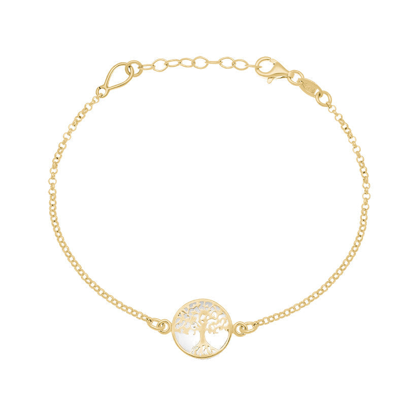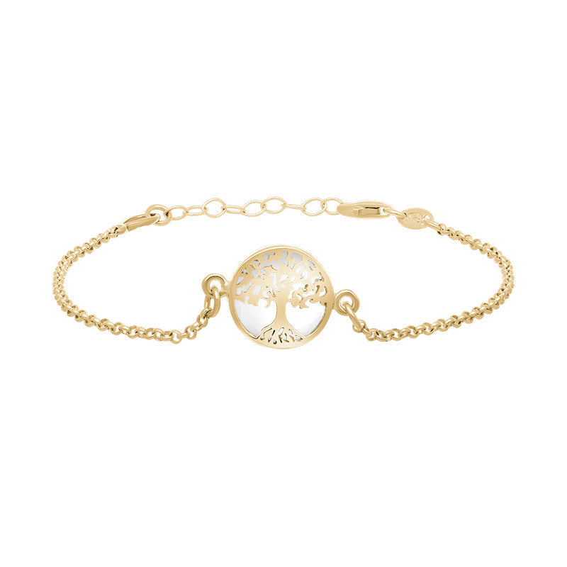 9ct Yellow Gold Bauxite Round Tree of Life Chain Bracelet, B1249.