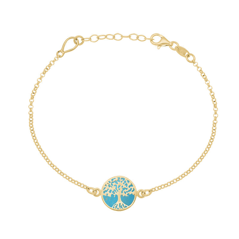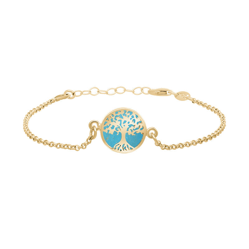 9ct Yellow Gold Turquoise Round Tree of Life Chain Bracelet, B1249.