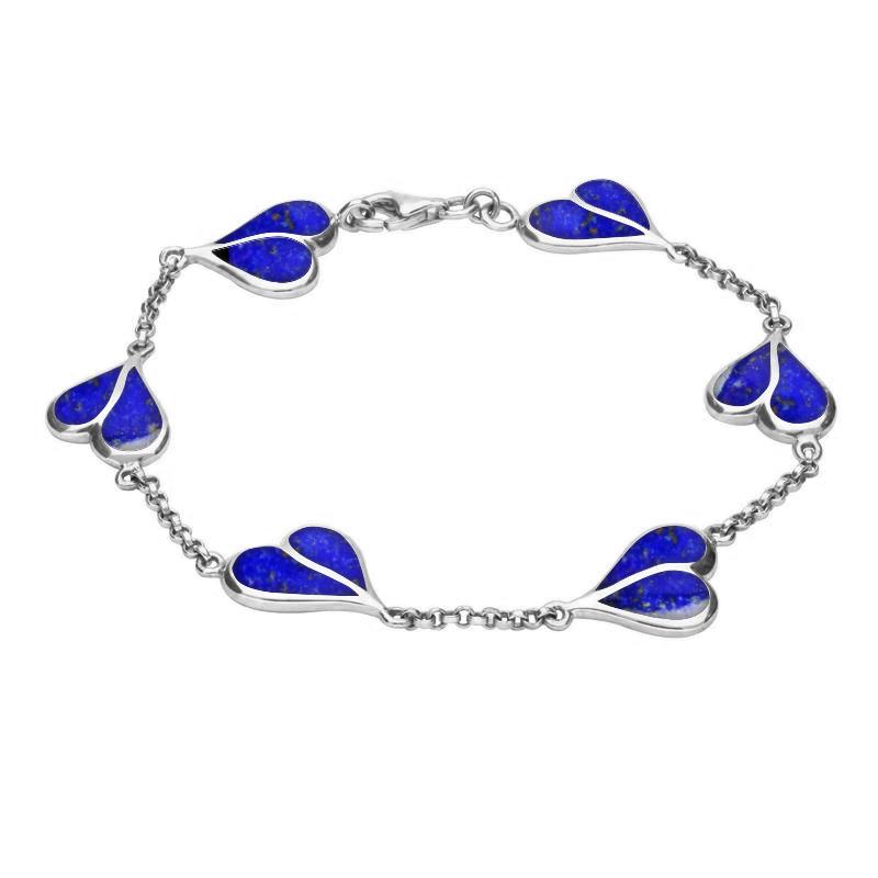 This popular split heart bracelet is part of our Heritage handmade jewellery collection and features the finest natural Lapis Lazuli. The hand carved gemstones are flush set into the organic, contemporary heart shapes giving a smooth and highly polished finish. Completed with a secure sterling silver lobster clasp. Matching necklace, earrings and ring available. Available in a range of gemstones.