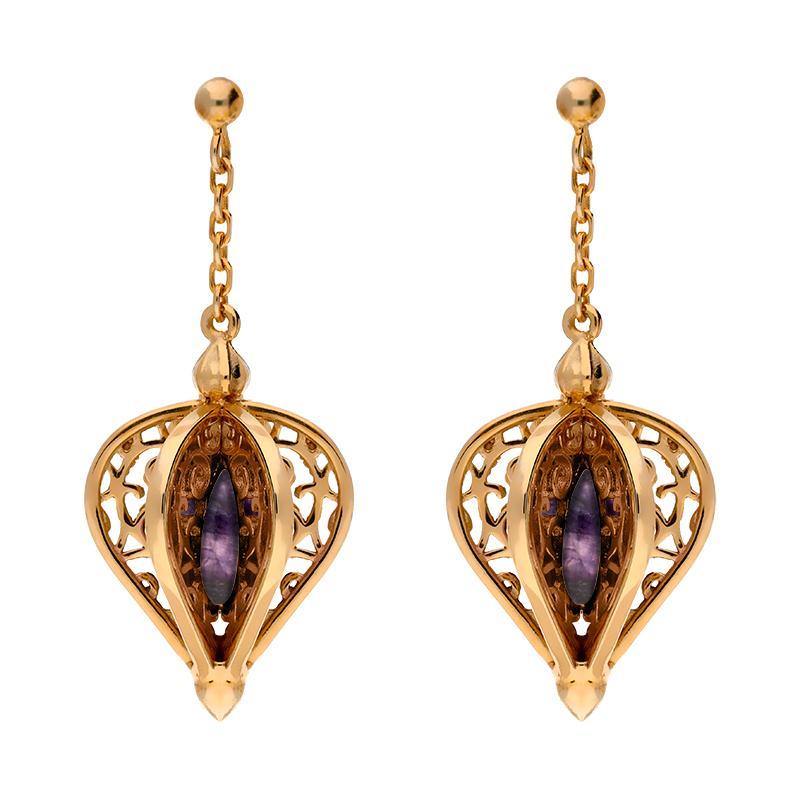 9ct Rose Gold Blue John Flore Filigree Drop Earrings E1781