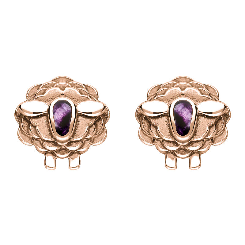 9ct Rose Gold Blue John Sheep Stud Earrings