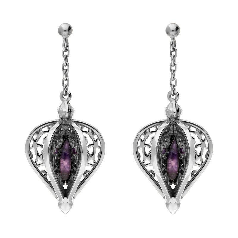 9ct White Gold Blue John Flore Filigree Drop Earrings E1781