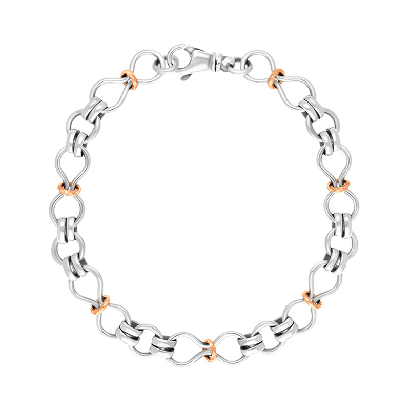 Sterling Silver 18ct Rose Gold Figure of Eight Bracelet