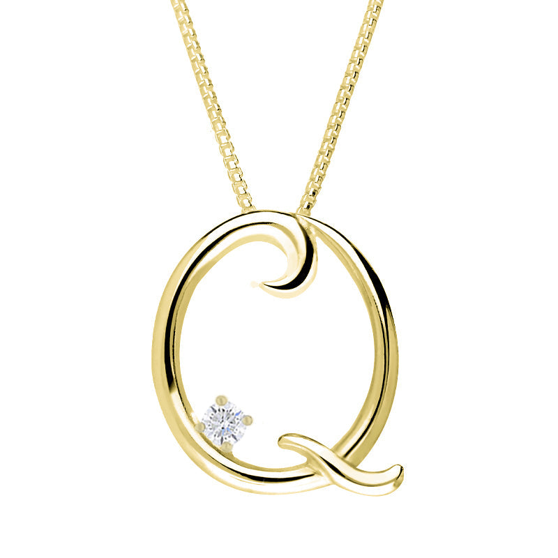 Love Letters 9ct Yellow Gold 0.10ct Diamond Initial Q Necklace, P3762