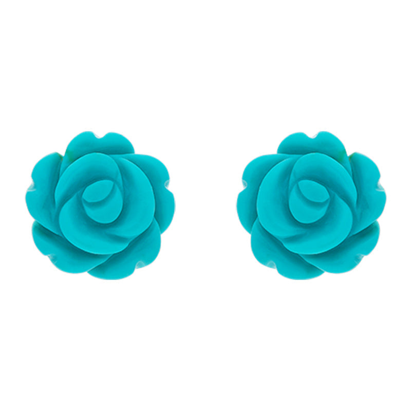 Sterling Silver Turquoise Tuberose 8mm Rose Stud Earrings