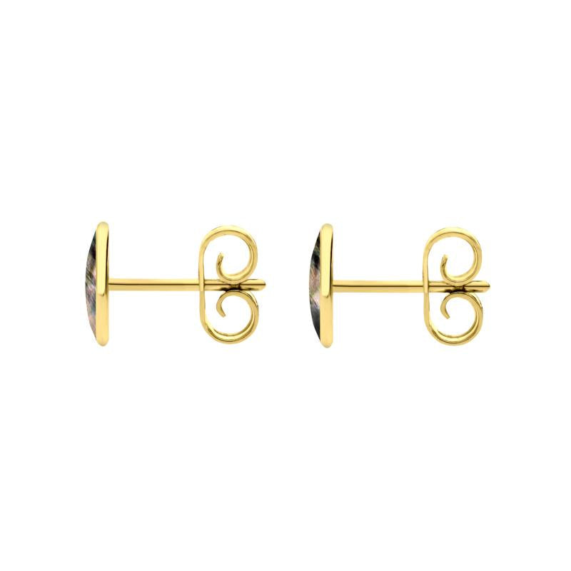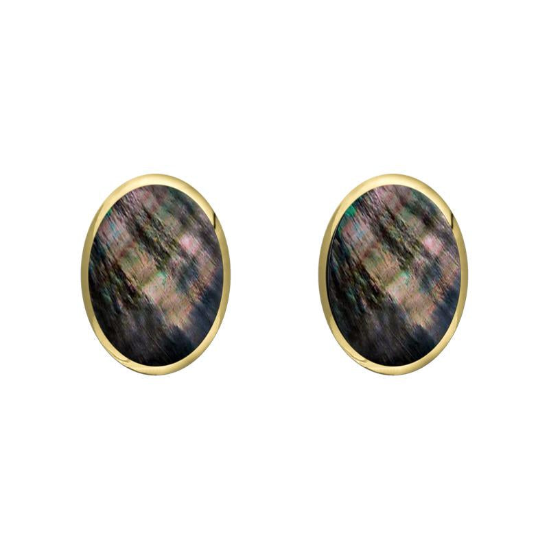 9ct Yellow Gold Dark Mother of Pearl 7 x 5mm Classic Small Oval Stud Earrings, E005.