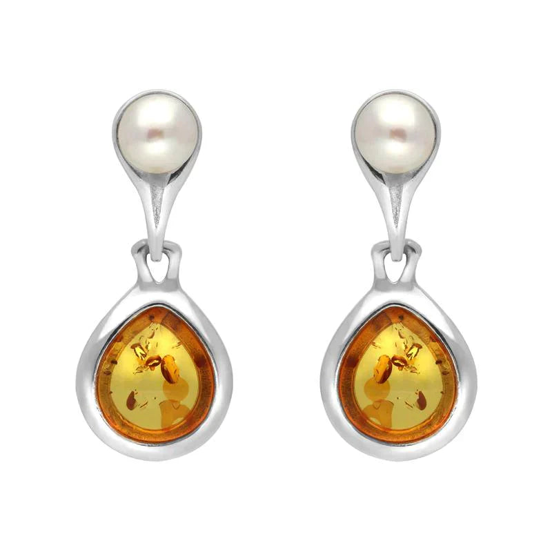 Sterling Silver Amber Pearl Drop Earrings, E1892.