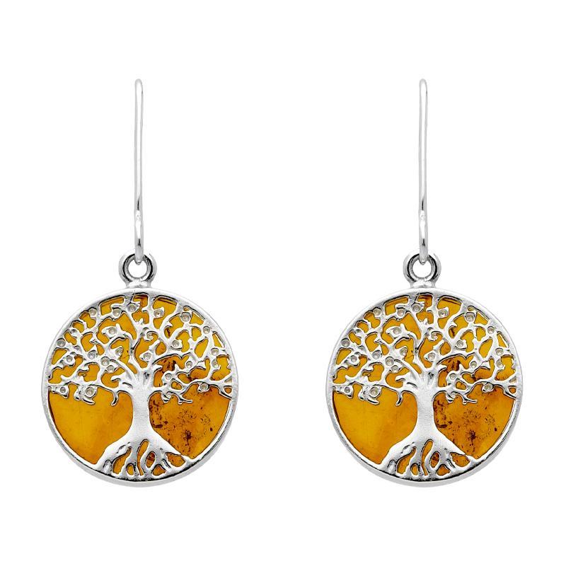 This set of elegant sterling silver and Baltic amber tree design drop earrings are perfect for any occasion. In ancient times the Tree of Life was considered to be a symbol of immortality. The leaves on the tree were thought to have magical properties and elements to heal the soul.