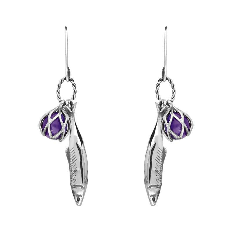 Sterling Silver Emma Stothard Silver Darling Amethyst Float Charm Hook Earrings