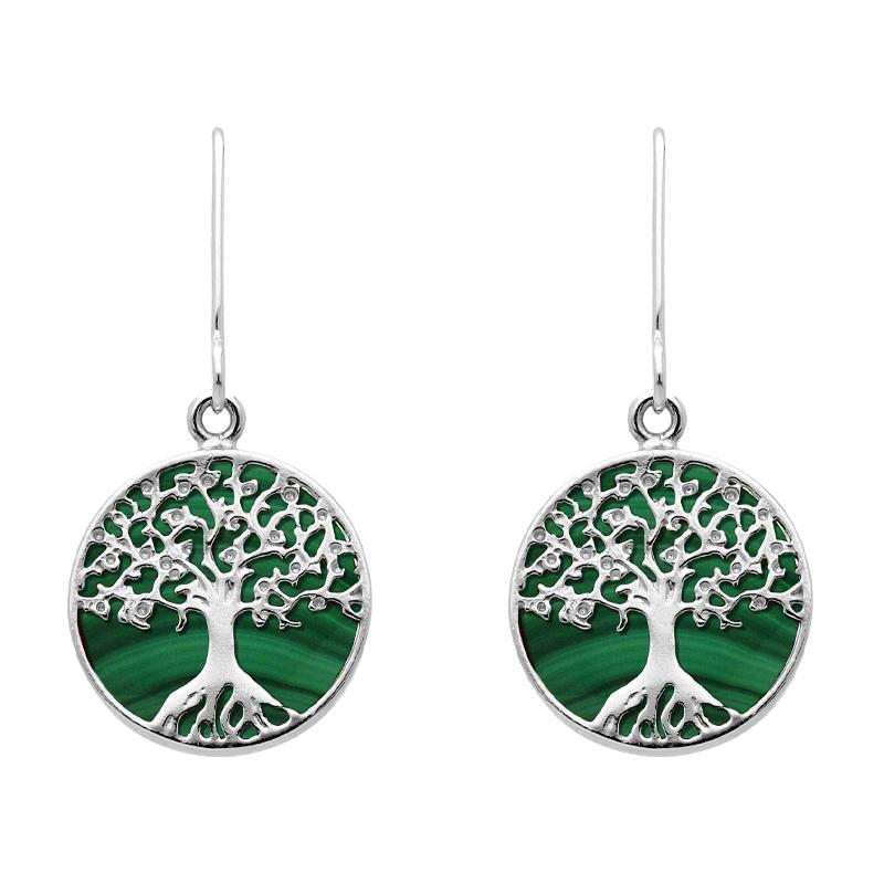 • Sterling Silver Malachite Round Tree of Life Drop Earrings - E2429 (TOL-187)