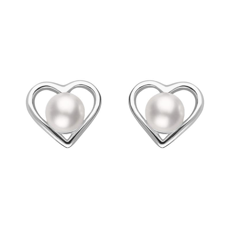 These romantic earrings feature two lustrous white pearls that sit in the centre of the beautiful sterling silver open heart frames. The stunning earrings are secured with post and butterfly fastenings for everyday wear.