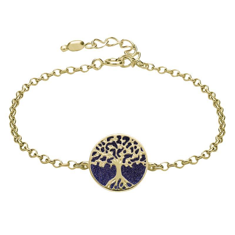 9ct Yellow Gold Blue Goldstone Round Tree of Life Chain Bracelet, B1140.