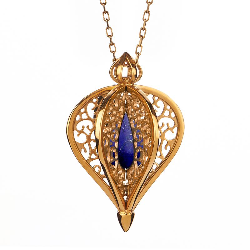 9ct Yellow Gold Lapis Lazuli Flore Filigree Small Necklace P2338C