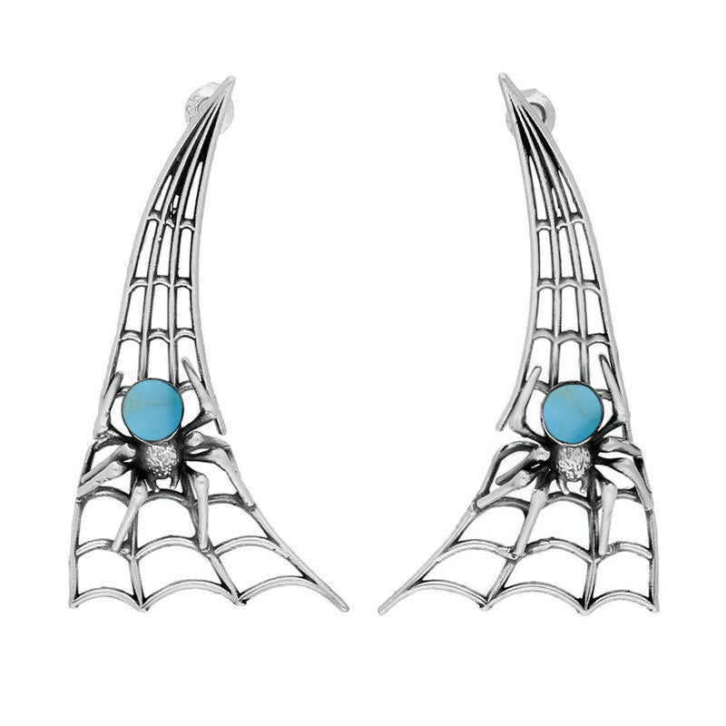 These earrings are part of our Gothic collection and feature sterling silver spider webs with silver and finest Turquoise spiders. These statement earrings are inspired by many Gothic events held in Whitby throughout the year.