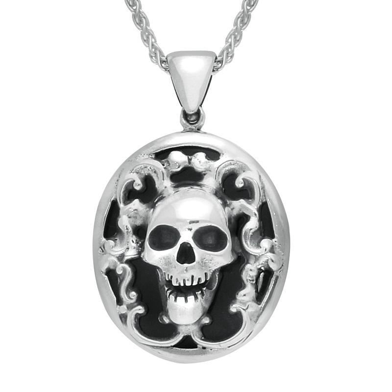 Sterling Silver Whitby Jet Small Oval Skull Necklace, P2798.