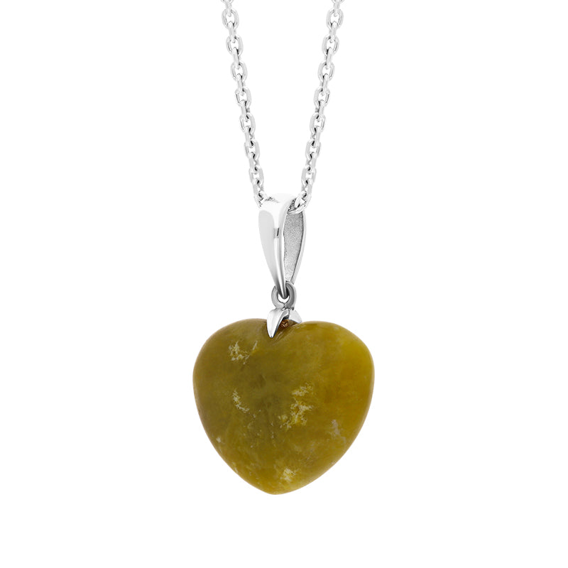 This gorgeous pendant features a hand carved unique three dimensional heart using genunine Connemara. An 18 inch sterling silver chain passes through the elegant bale which completes this fabulous item hand-crafted item. Dimensions: 16mm x 18mm.