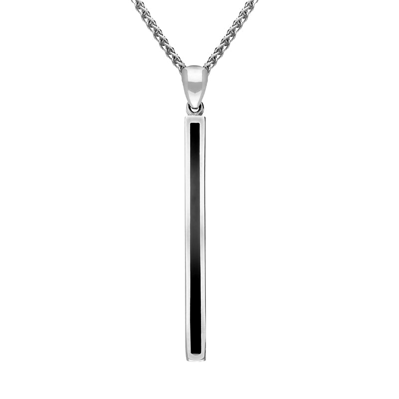 18ct White Gold Whitby Jet Long Slim Oblong Necklace