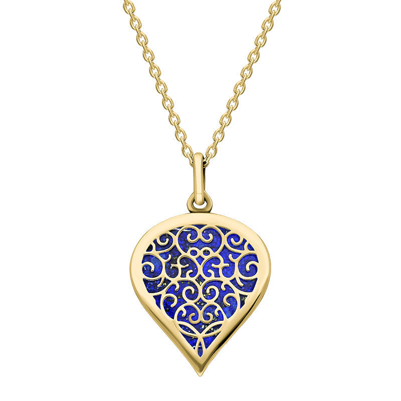 18ct Yellow Gold Lapis Lazuli Flore Filigree Medium Heart Necklace. P3630.