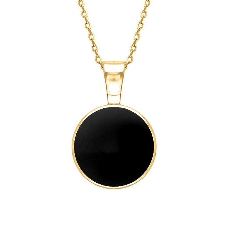 18ct Yellow Gold Whitby Jet Heritage Round Necklace. P018.