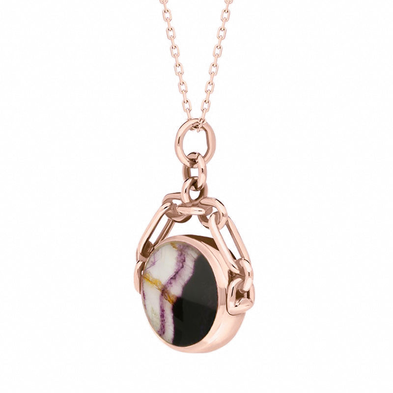9ct Rose Gold Whitby Jet Blue John Double Sided Swivel Fob Necklace, P209.