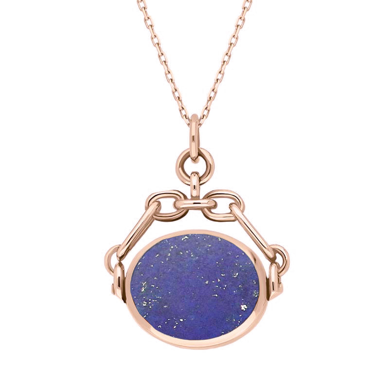 9ct Rose Gold Whitby Jet Lapis Lazuli Double Sided Swivel Fob Necklace