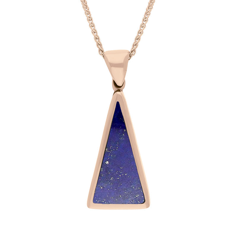 9ct Rose Gold Whitby Jet Lapis Lazuli Small Double Sided Triangular Fob Necklace, P834.
