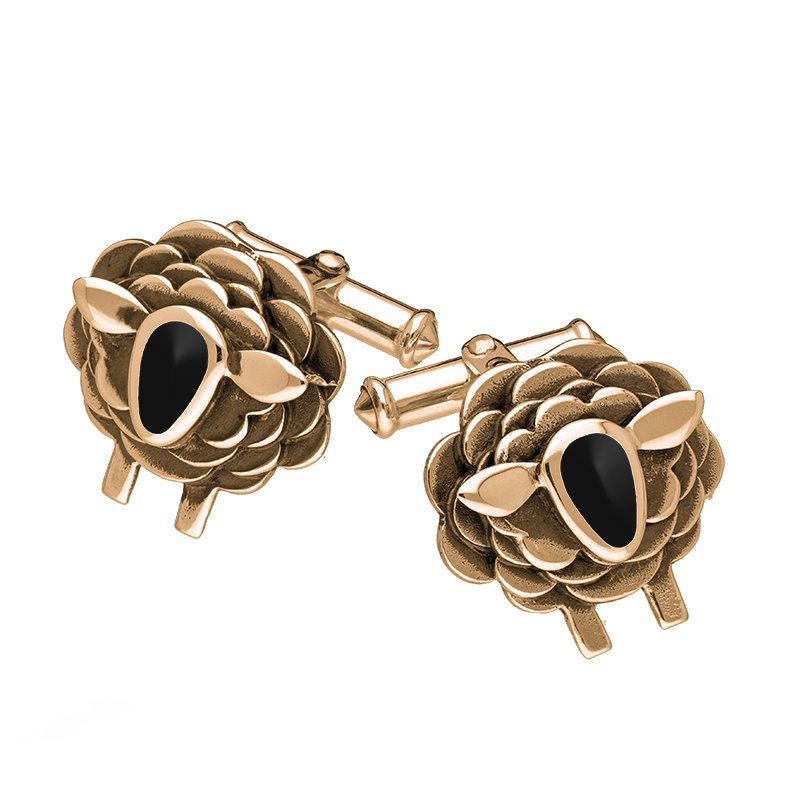 9ct Rose Gold Whitby Jet Sheep Cufflinks