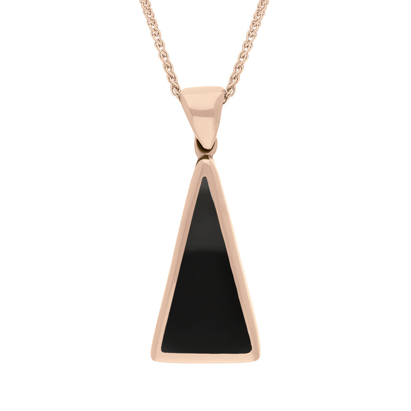 9ct Rose Gold Whitby Jet Turquoise Small Double Sided Triangular Fob Necklace, P834.