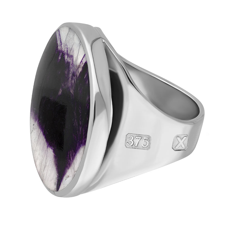 9ct White Gold Blue John Hallmark Medium Round Ring