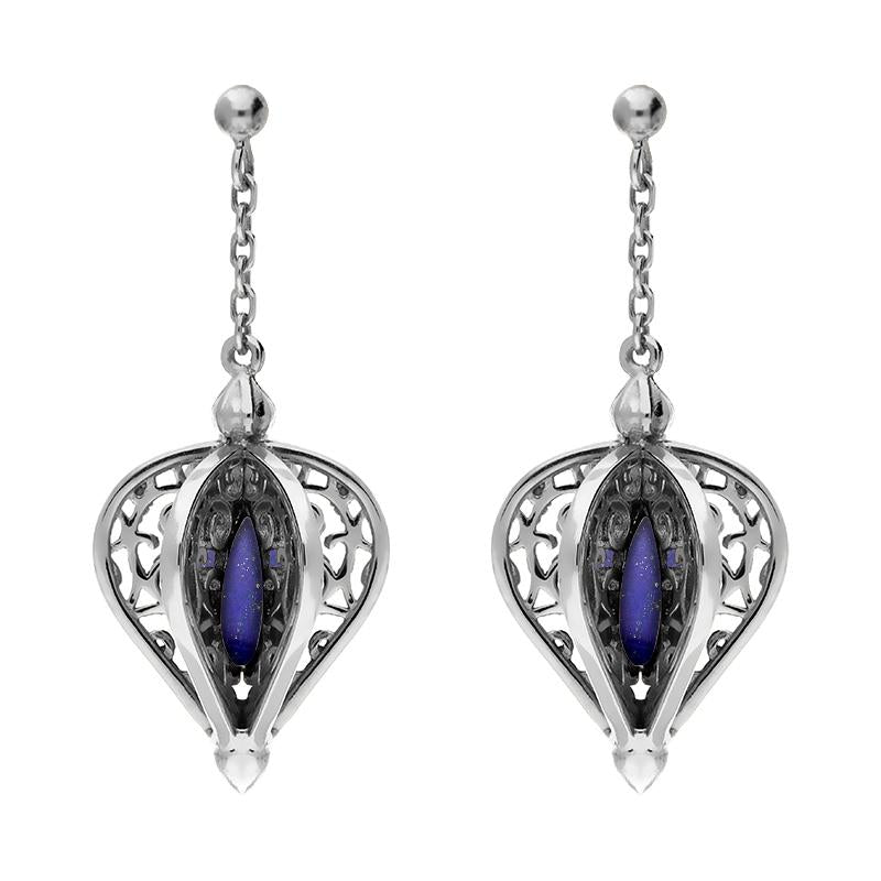 9ct White Gold Lapis Lazuli Flore Filigree Drop Earrings