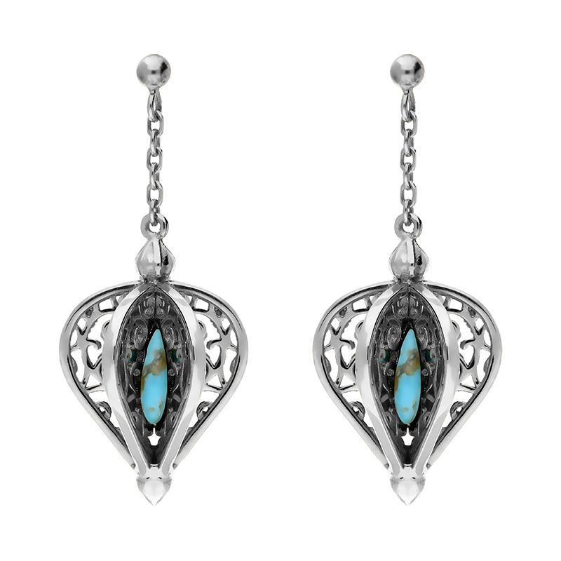 9ct White Gold Turquoise Flore Filigree Drop Earrings E1781