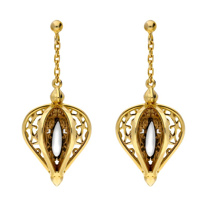 9ct Yellow Gold Bauxite Flore Filigree Drop Earrings