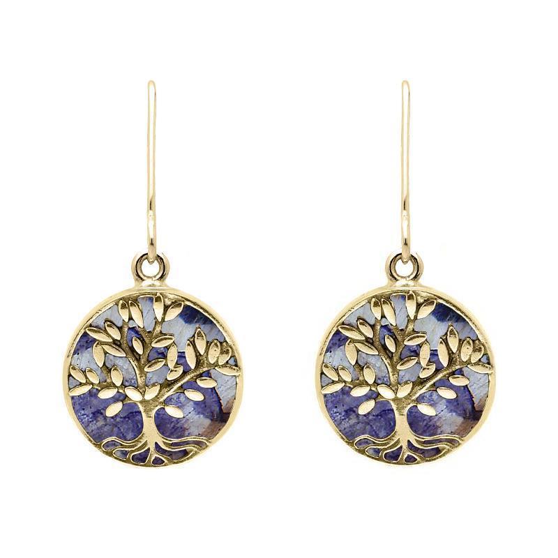 9ct Yellow Gold Blue John Round Large Leaves Tree of Life Two Piece Set