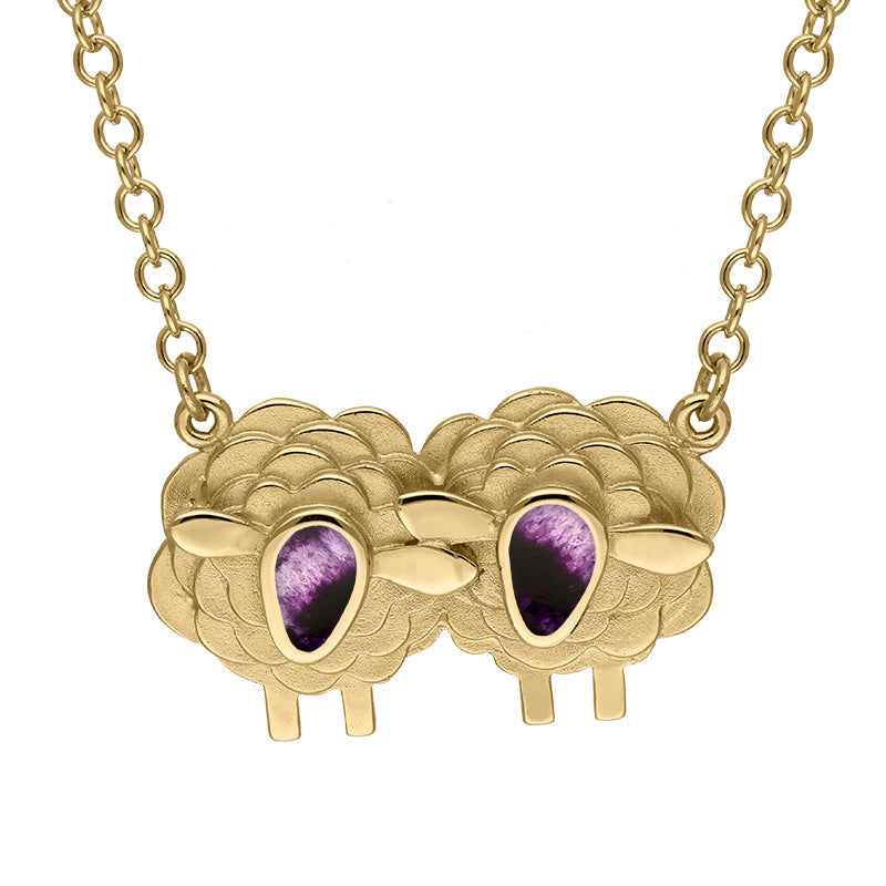 9ct Yellow Gold Blue John Two Large Sheep Necklace
