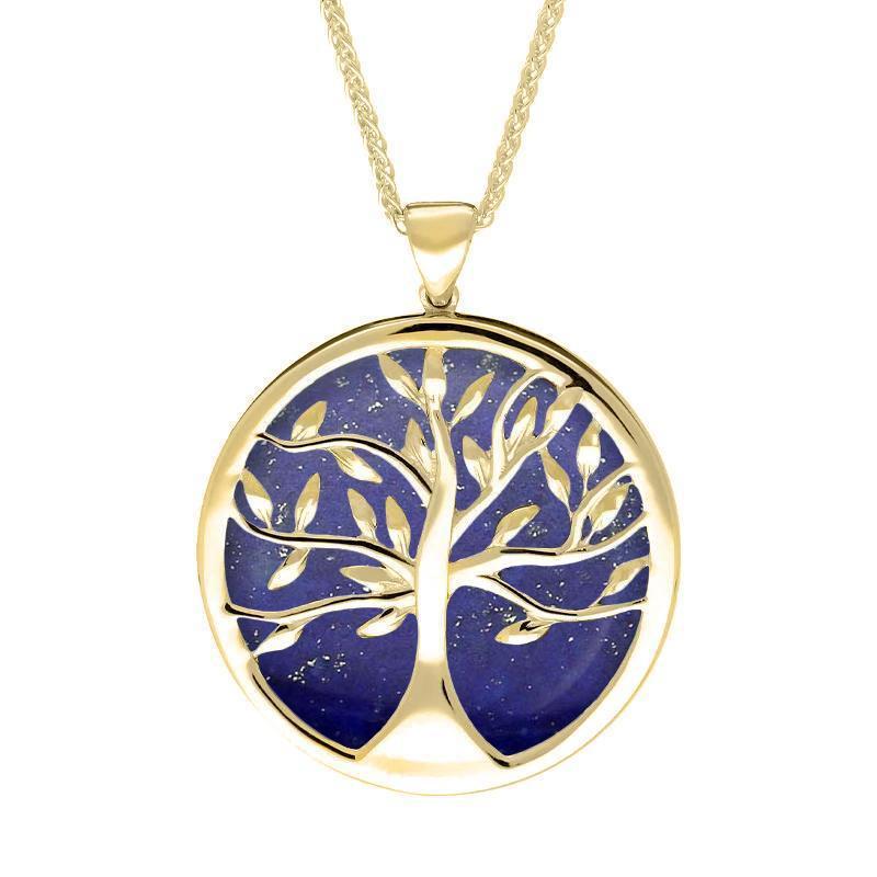 9ct Yellow Gold Lapis Lazuli Large Round Tree of Life Necklace, P3418.
