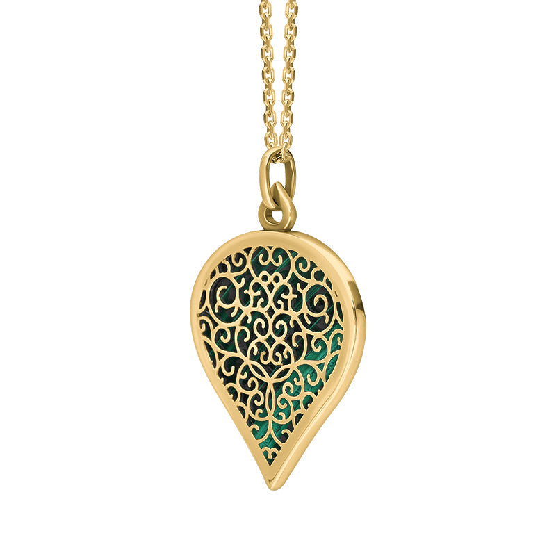 9ct Yellow Gold Malachite Flore Filigree Large Heart Necklace