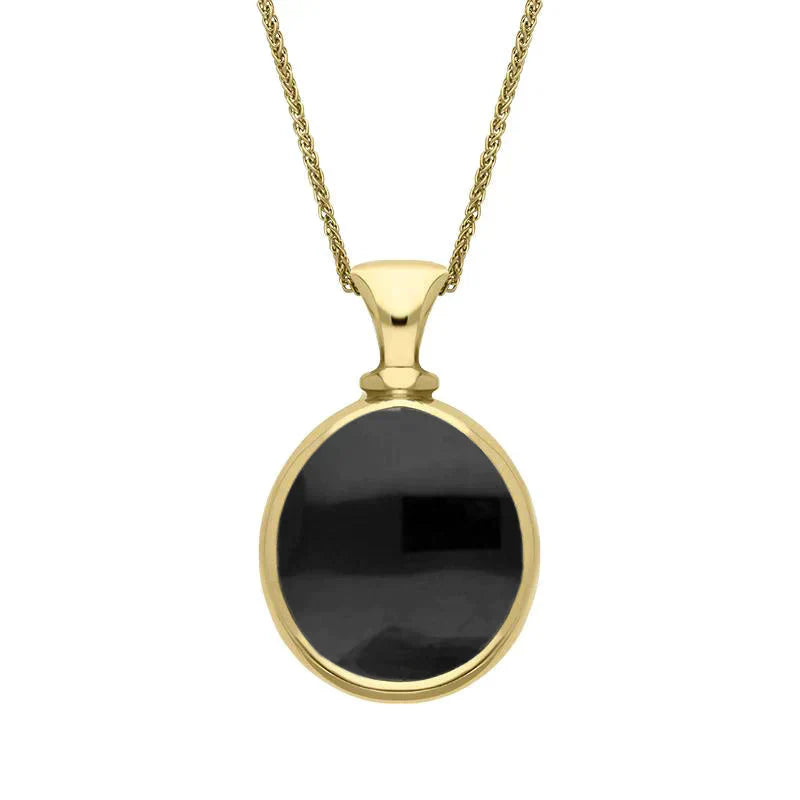9ct Yellow Gold Whitby Jet Blue John Small Double Sided Pear Fob Necklace, P220.