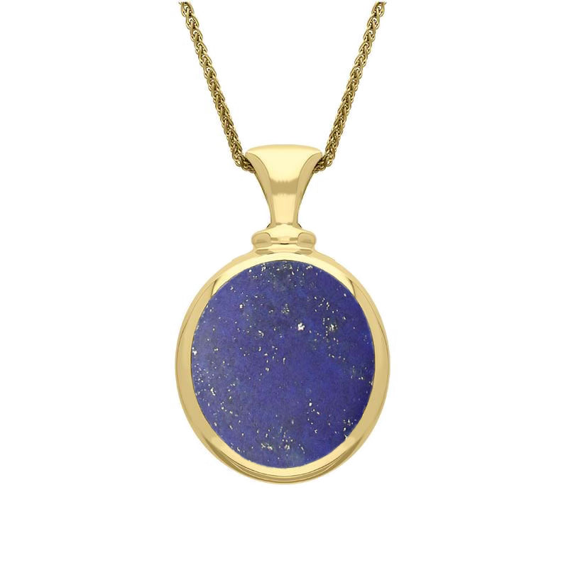 9ct Yellow Gold Whitby Jet Lapis Lazuli Small Double Sided Oval Fob Necklace, P219.