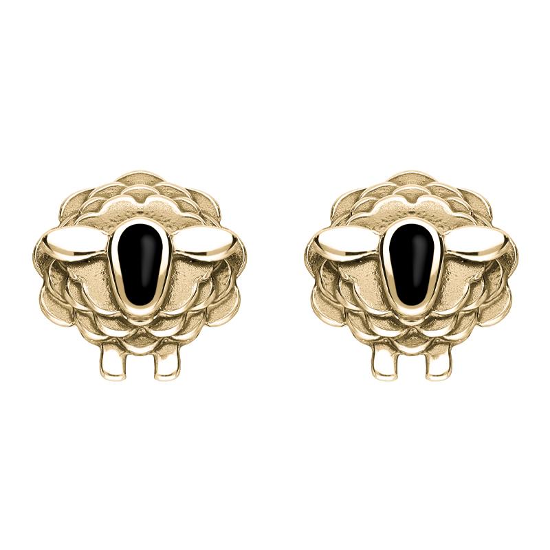 9ct Yellow Gold Whitby Jet Sheep Two Piece Set, S205