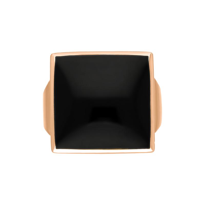 18ct Rose Gold Whitby Jet Small Square Ring, R603.