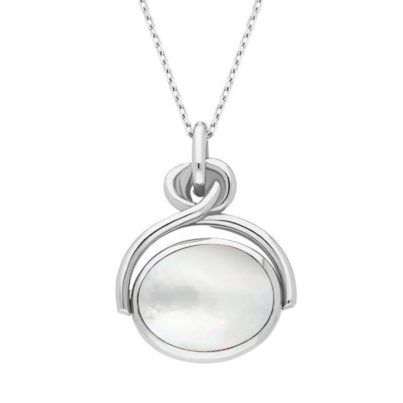 18ct White Gold Blue John White Mother of Pearl Oval Swivel Fob Necklace