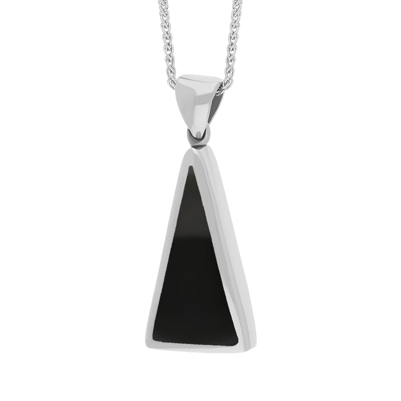 18ct White Gold Whitby Jet Turquoise Small Double Sided Triangular Fob Necklace, P834.