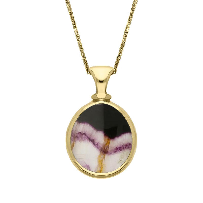 18ct Yellow Gold Blue John White Mother Of Pearl Small Double Sided Pear Fob Necklace, P220.