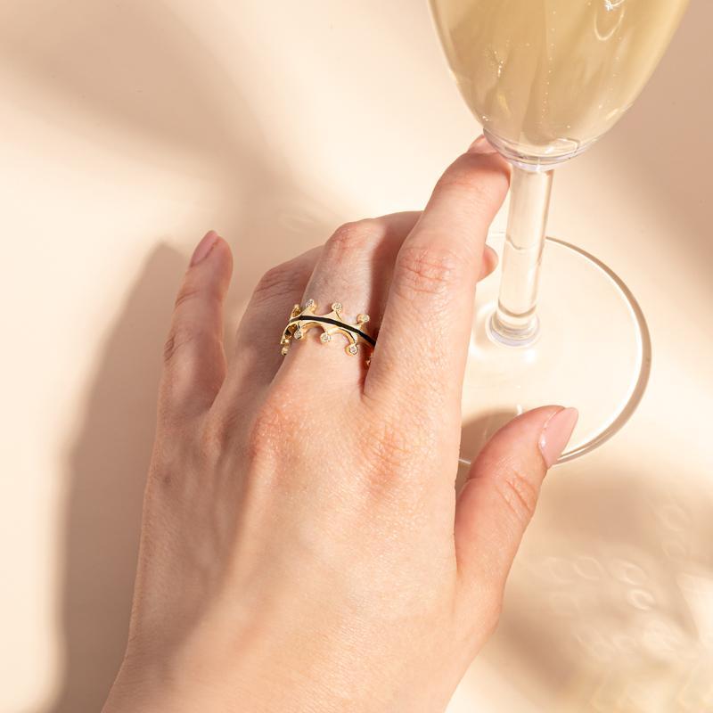 18ct Yellow Gold Whitby Jet Diamond Tiara Double Band Ring