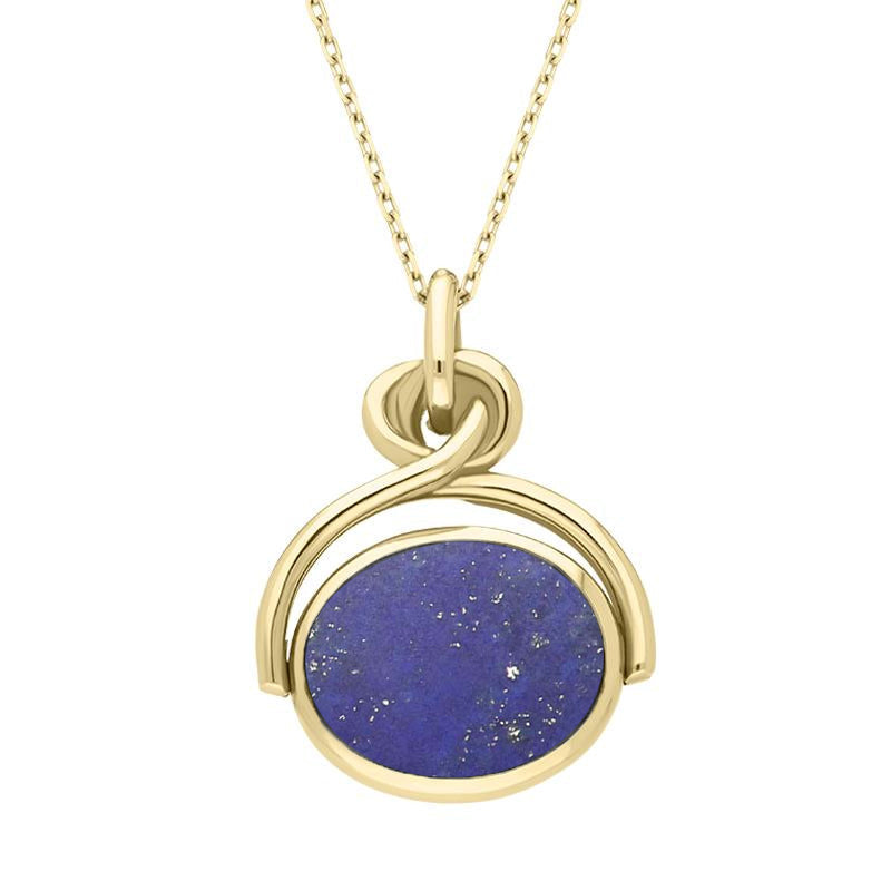 18ct Yellow Gold Whitby Jet Lapis Lazuli Oval Swivel Fob Necklace, P096.