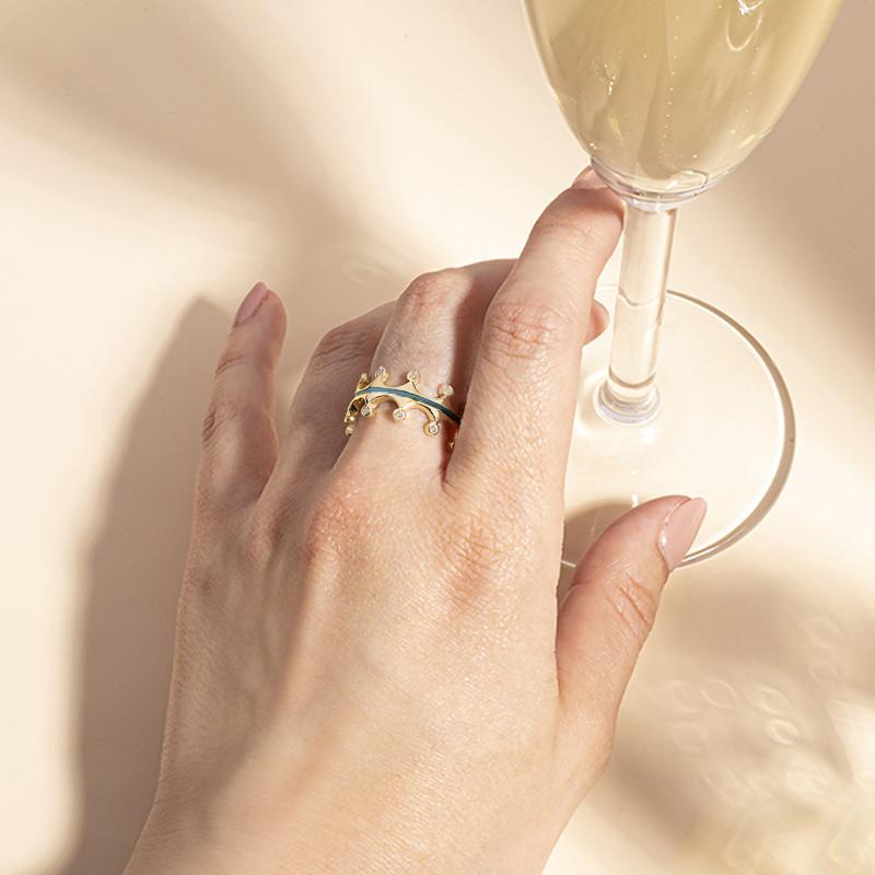9ct Yellow Gold Turquoise Diamond Tiara Double Band Ring
