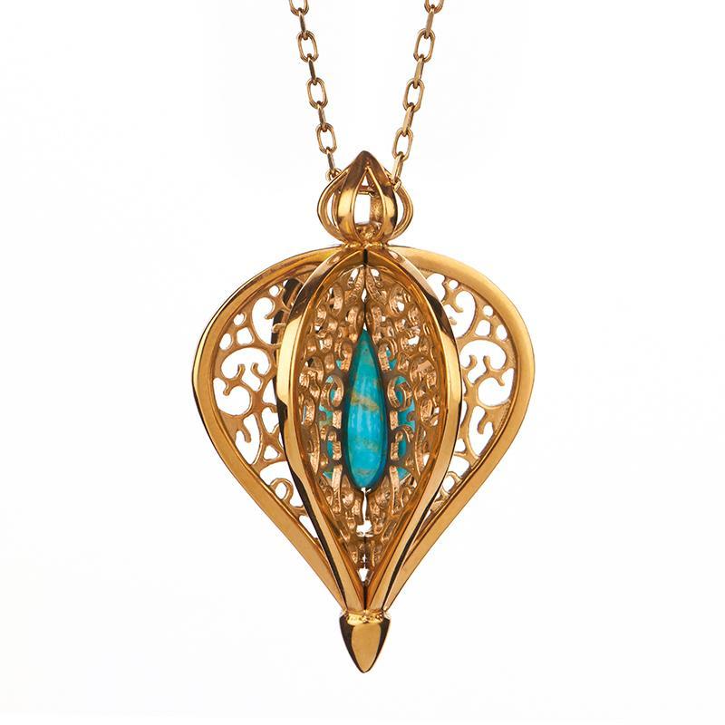 9ct Yellow Gold Turquoise Flore Filigree Small Necklace P2338C